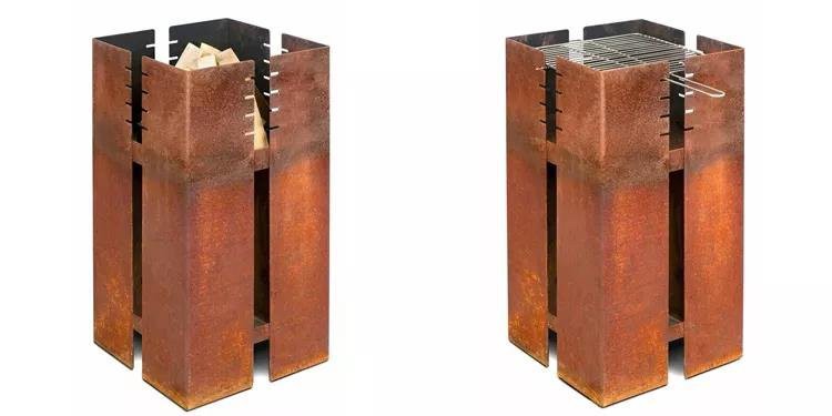 Der minimalistische Kubus kann sowohl als schönes Lichtobjekt im Eingangsbereich als auch als vollwertiger Grill im Garten dienen.